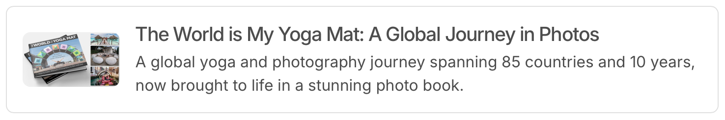 Head over to The World Is My Yoga Mat Kickstarter page where you can pre-order a copy of the book and see how the whole process works. Together we can make this book a reality.